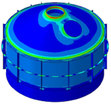 Análise realizada em função de corrosão severa no costado próximo ao bocal da chaminé. Um reparo foi proposto para garantia da proteção contra colapso plástico e flambagem, e o projeto foi verificado a partir de análise de adequação ao uso segundo Nível 3 de avaliação da Parte 4 e Parte 5 segundo critérios do documento API-579 - Generalized and Localized Metal Loss.