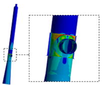 Análise de tensões e subsequente cálculo de mecânica da fratura para demonstrar que as trincas de corrosão sob tensão detectadas não comprometem a integridade estrutural do equipamento nas condições de projeto. Os cálculos foram realizados segundo Nível 2 da Parte 9 do documento API-579 - Fracture Mechanics. A avaliação foi suportada por cálculos numéricos pelo método dos elementos finitos.