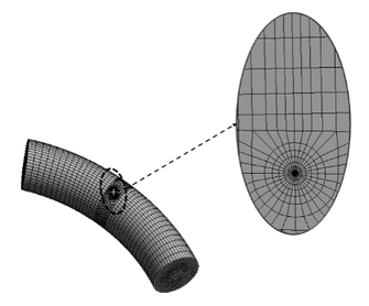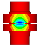 Análise realizada pelo método dos elementos finitos para suporte e investigação da falha ocorrida em molas de válvulas da indústria petrolífera offshore. Uma trinca representativa de um conjunto de pites foi inserida na malha do modelo numérico para calcular o fator intensificador de tensões na ponta da trinca e determinar seu tamanho crítico, em função da tenacidade do material.